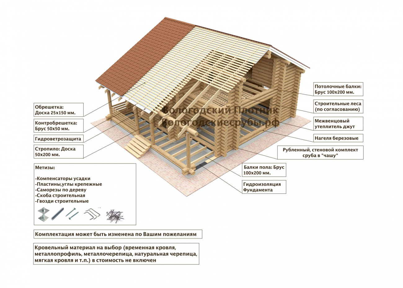 В стоимость рубленного дома с монтажными работами на Вашем участке "под усадку" входит: