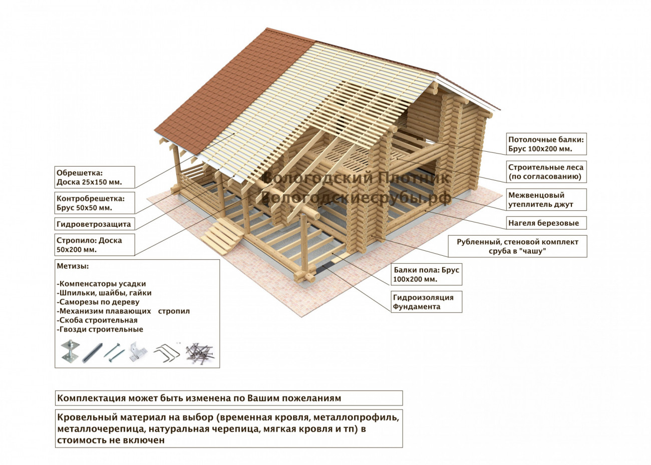 В стоимость рубленного дома с монтажными работами на Вашем участке "под усадку" входит:
