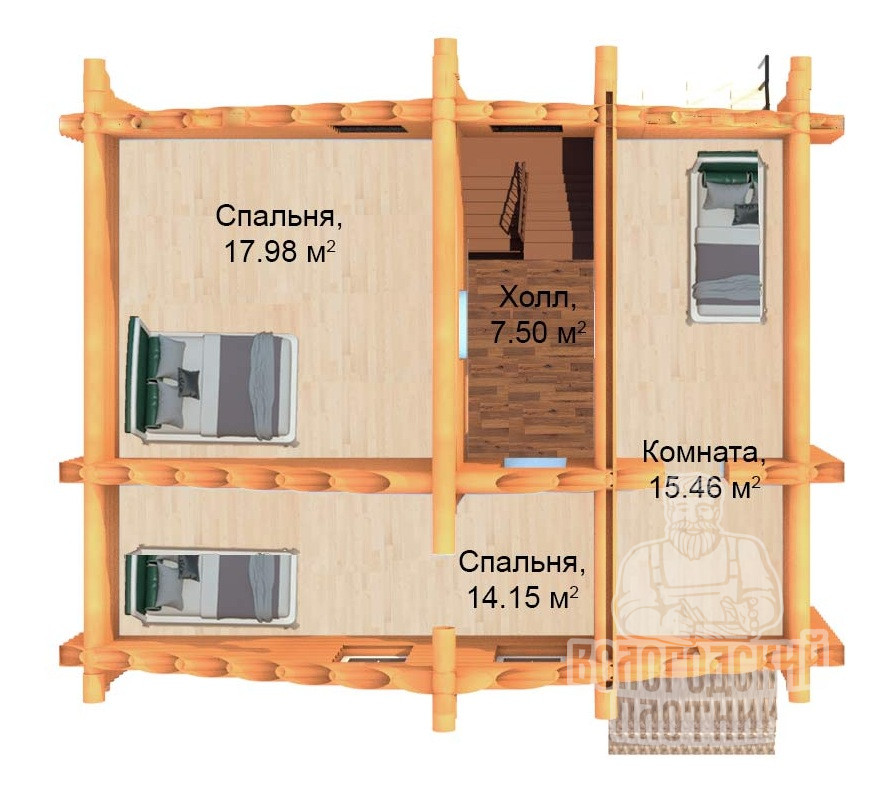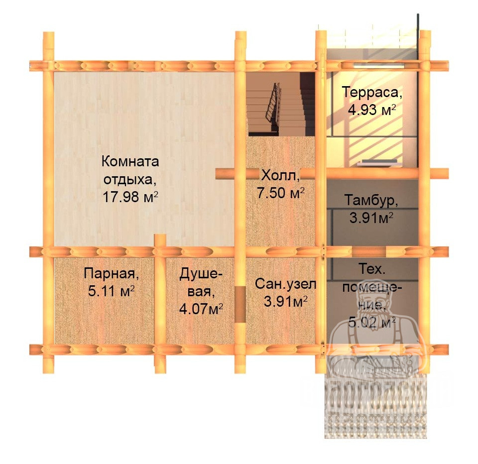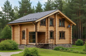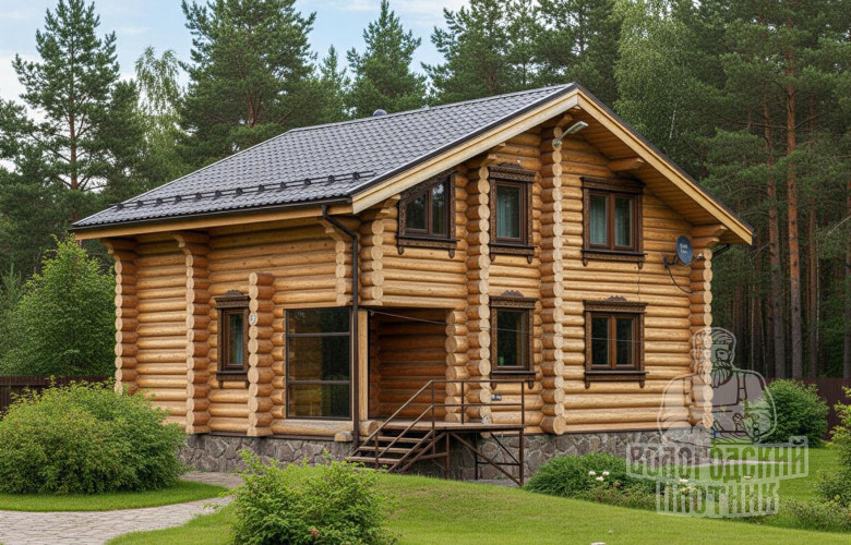 Рубленная деревянная двухэтажная дом-баня на основе сруба ручной рубки в «чашу» предназначенный для круглогодичного проживания. Материал стен: Ель, сосна заготовленная в экологически чистом районе на севере Вологодской области.